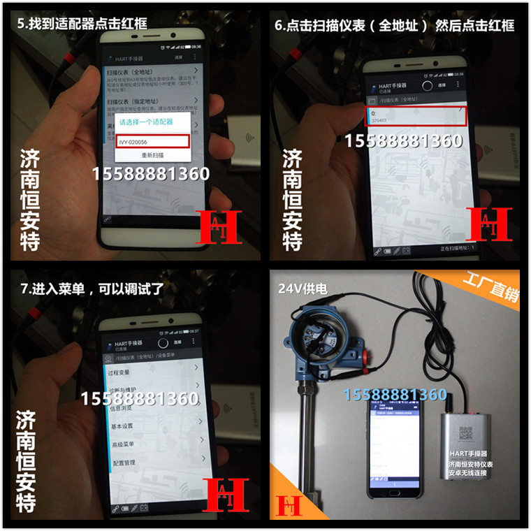 濟南恒安特儀表i595無線HART手操器采用藍牙連接安卓手機,通過APP操作,集成24V供電和回路校驗儀,支持遠程調試,支持橫河,羅斯蒙特、E+H、橫河、富士、西門子、ABB、費希爾閥門在內的80%常用進口儀表和國產hart儀表的全參數,遠超其他國產手操器(不支持HART475DD文件全參數)。